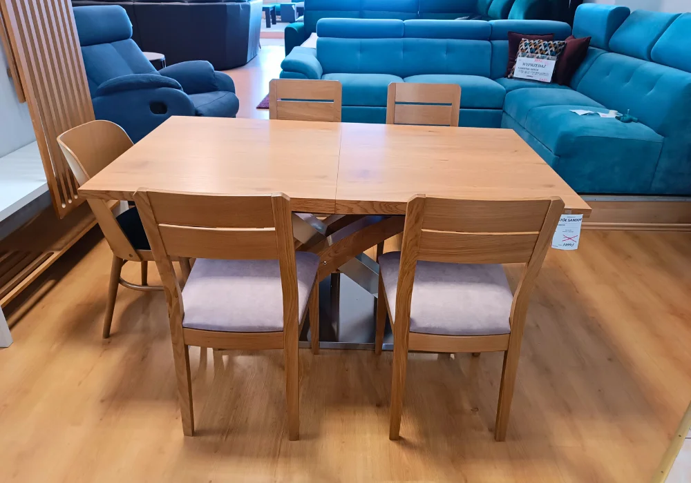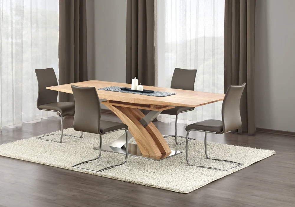 Mechanizm rozsuwania stołu został zaprojektowany z myślą o wygodzie użytkowników. Dzięki prostemu systemowi wystarczy rozsunąć blat i wysunąć dodatkową wkładkę, ukrytą pod nim, aby uzyskać większą powierzchnię. To doskonałe rozwiązanie na rodzinne obiady, spotkania z przyjaciółmi czy świąteczne przyjęcia.