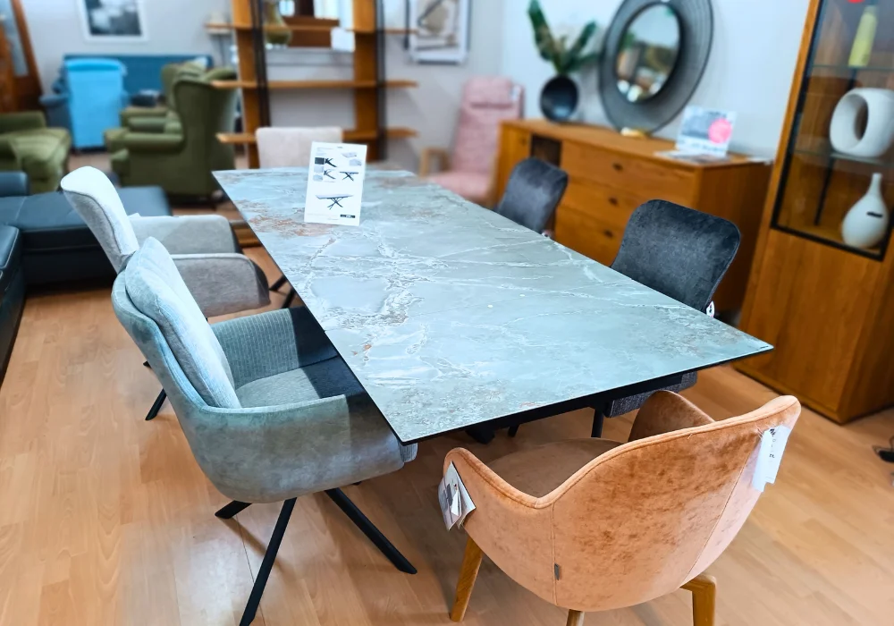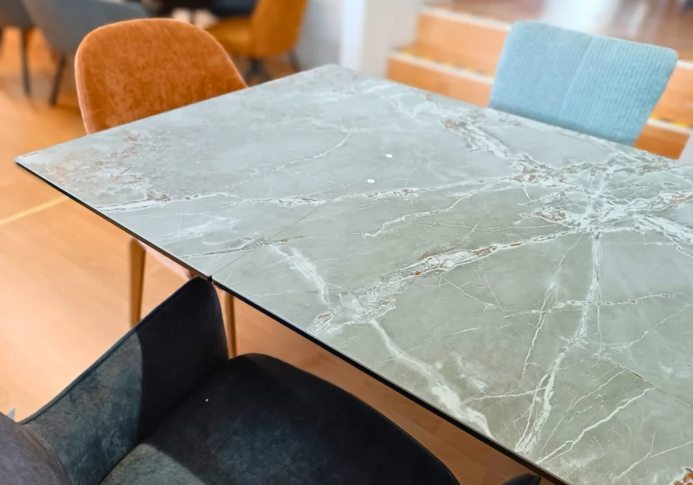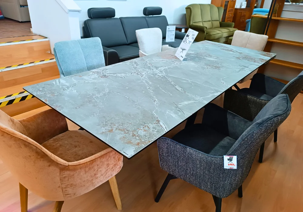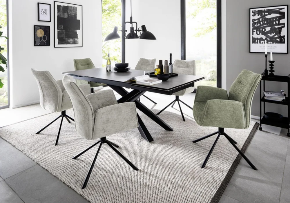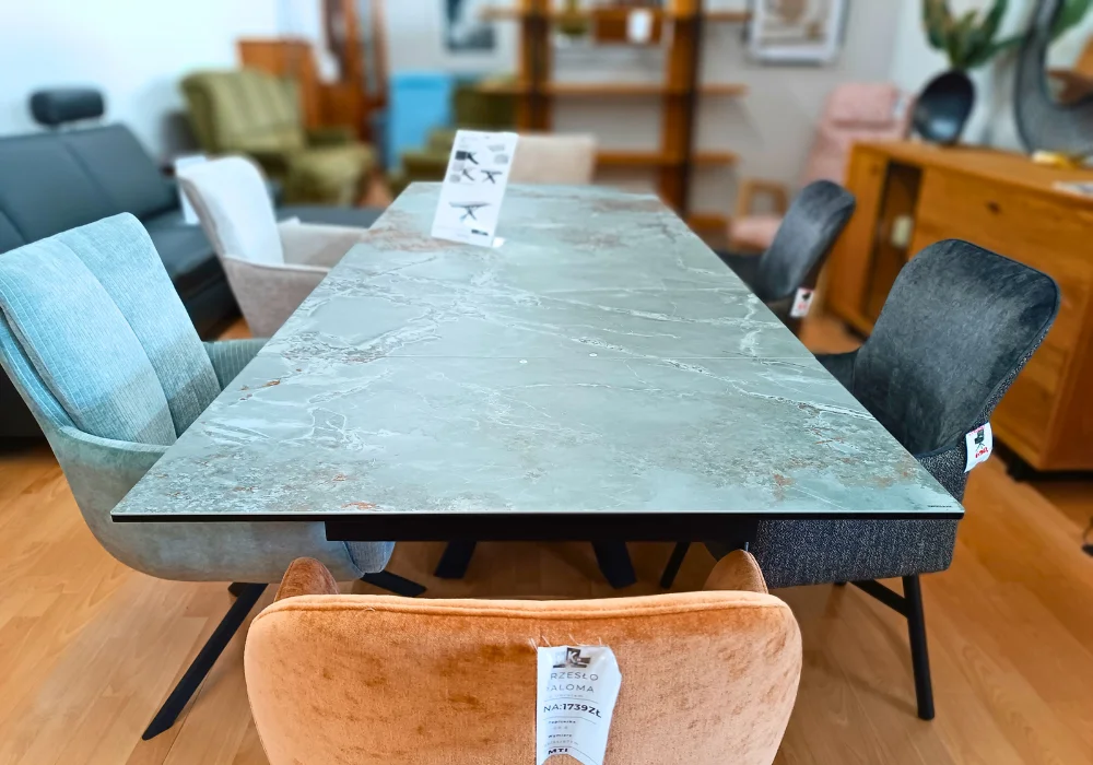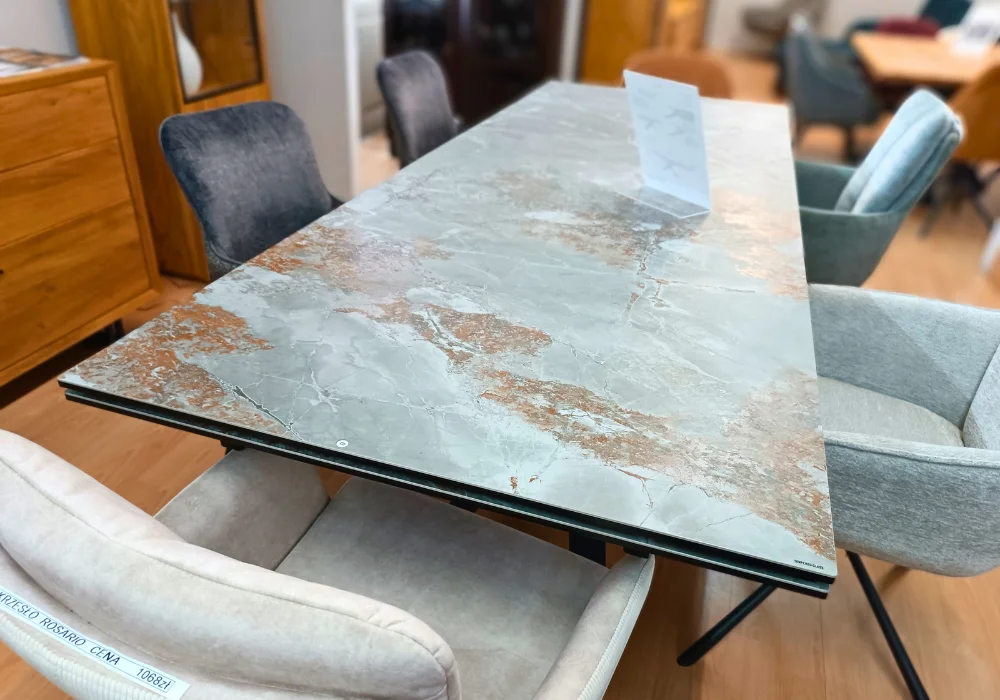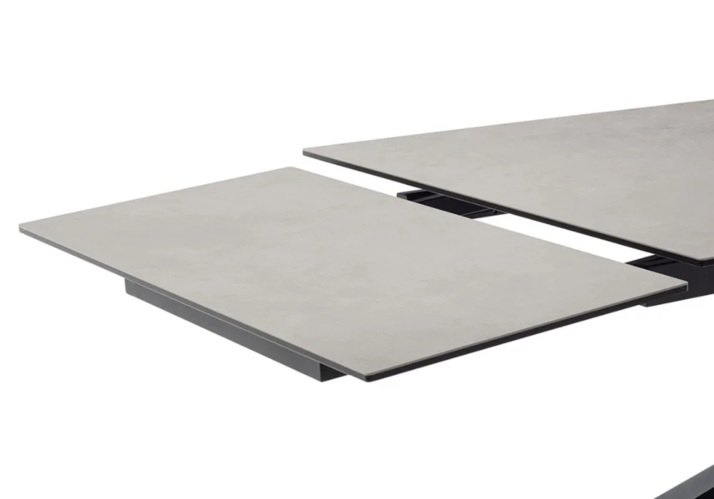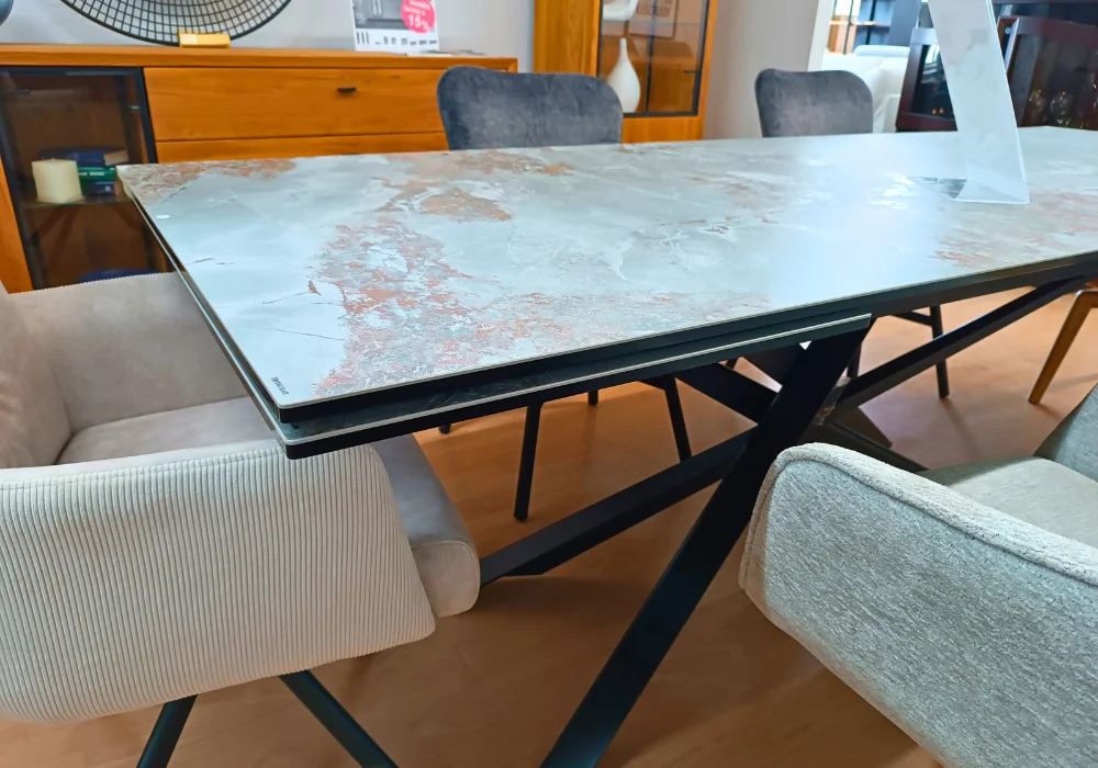 Stół Tesaro to nowoczesny, rozkładany mebel łączący elegancki wygląd z praktycznymi rozwiązaniami. Blat z ceramiki i szkła wyróżnia się odpornością na zarysowania, plamy i wysoką temperaturę, a także łatwością w czyszczeniu.