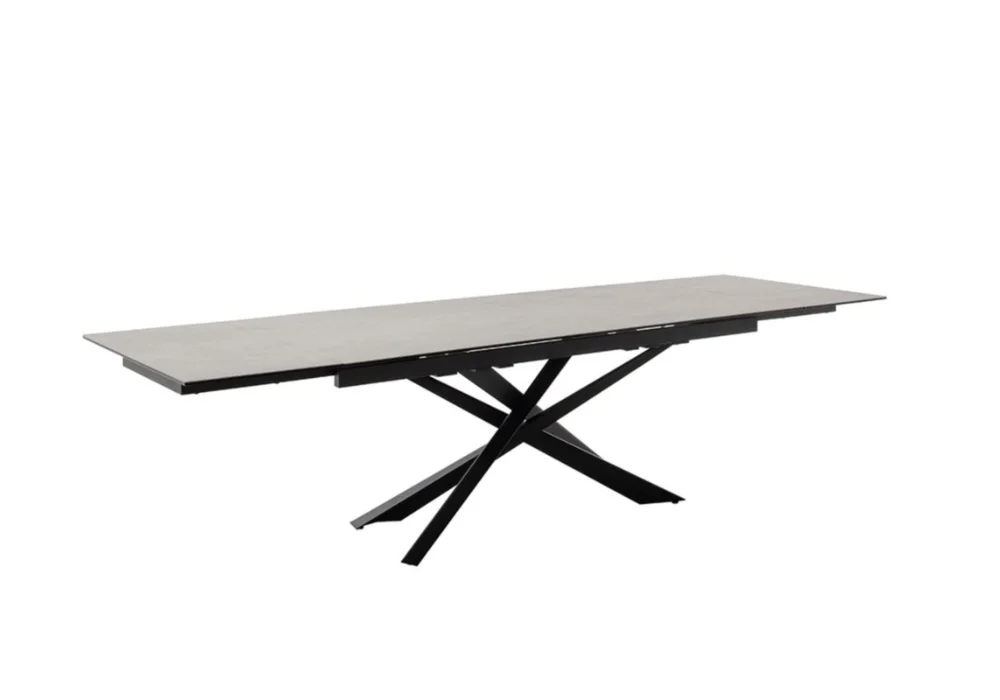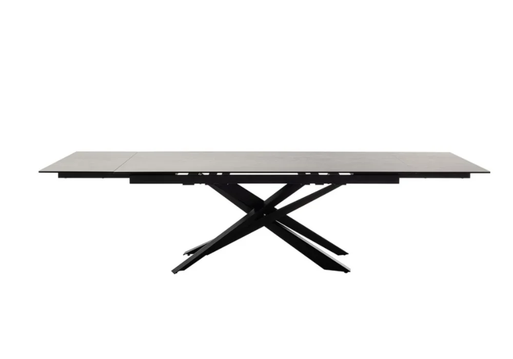 Stabilny stelaż ze stali malowanej proszkowo na czarny mat gwarantuje trwałość i nowoczesny charakter. Dzięki możliwości rozłożenia do 300 cm, Tesaro sprawdzi się zarówno na co dzień, jak i podczas większych spotkań.