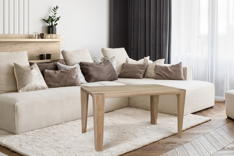 To mebel, który odznacza się zarówno wyjątkową solidnością, jak i subtelnym wdziękiem. Precyzyjnie wyprofilowany blat jest oznaką mistrzostwa rzemieślniczego wykonania, a jego elegancja idzie w parze z ogromną wytrzymałością. Jego masywne nogi tworzą solidną podstawę, która nie tylko nadaje meblowi mocne oparcie, ale także dodaje mu współczesnego charakteru. Wyważona proporcja między blatem a nogami sprawia, że stolik prezentuje się nie tylko elegancko, ale też w sposób wyraźnie nowoczesny.