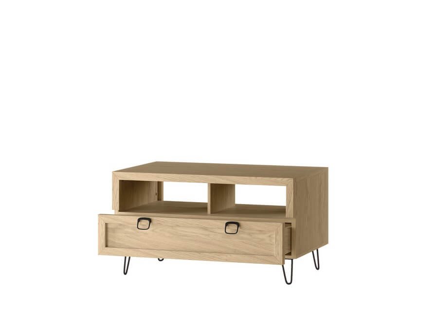 Funkcjonalny stolik okolicznościowy to idealna propozycja dla osób pragnących mieć użyteczny mebel przy maksymalnej oszczędności przestrzeni. Stolik wyposażony jest w szufladę, w której można schować wiele niezbędnych rzeczy oraz wolną przestrzeń pod blatem.