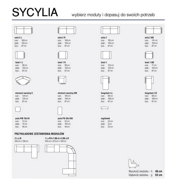 System modułowy Sycylia to idealne rozwiązanie przestronnego salonu. Wyposażony w wygodne oparcie z zagłówkiem pozwalają uzyskać wygodne podparcie głowy zwiększając komfort siedzenia oraz podłokietnik pozwalający wygodnie oprzeć się bokiem.