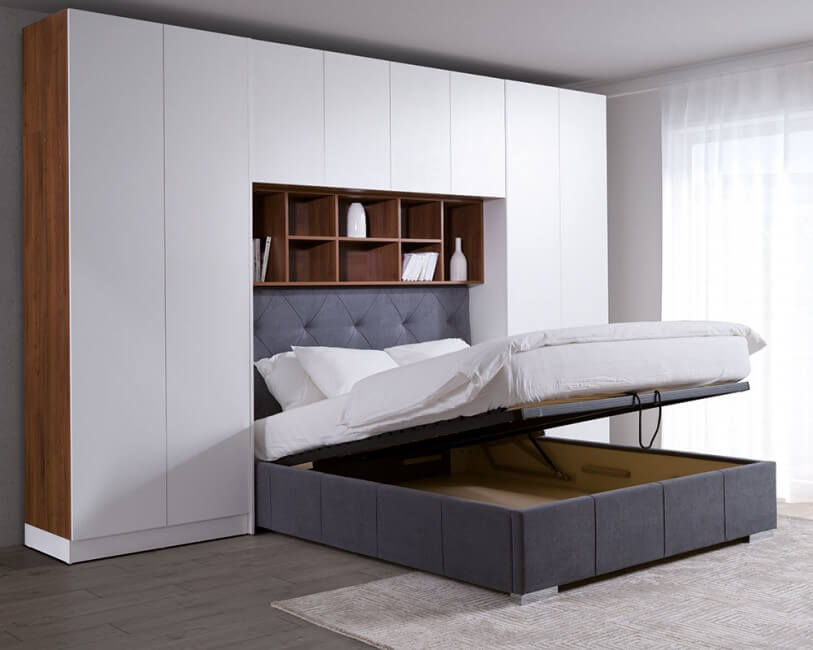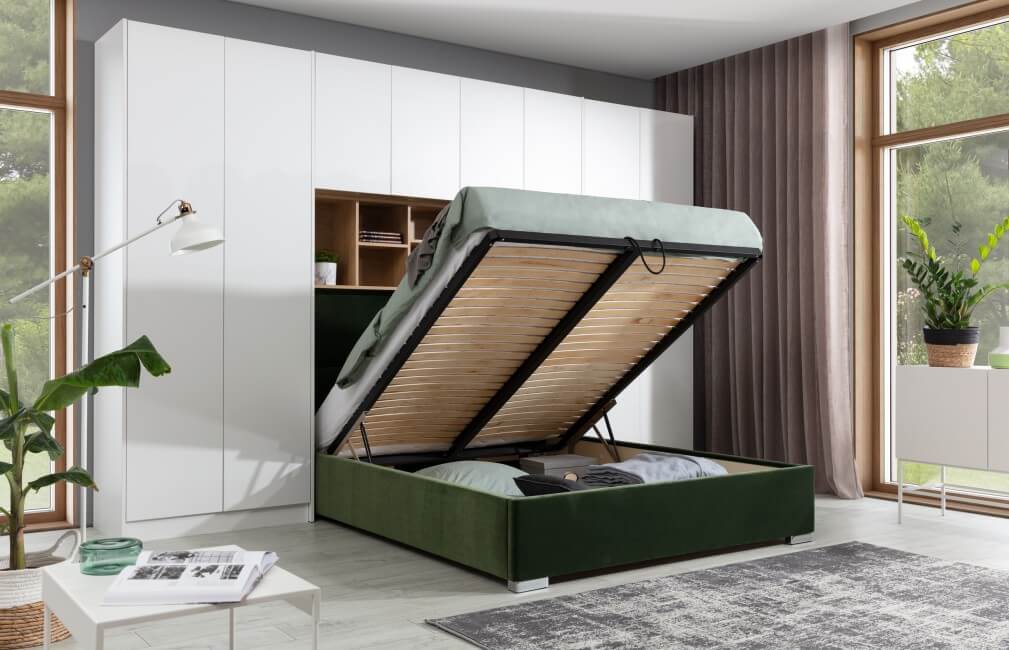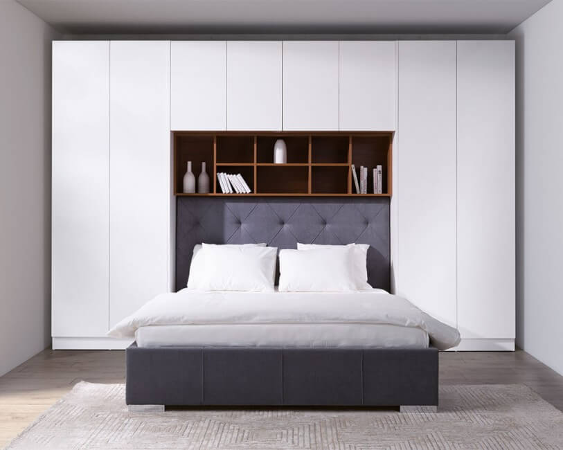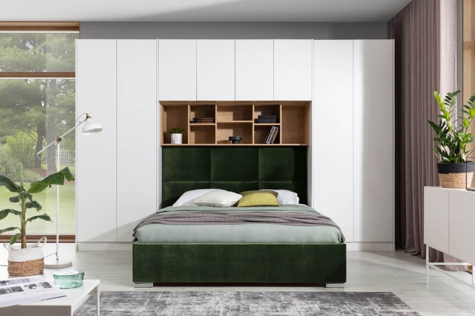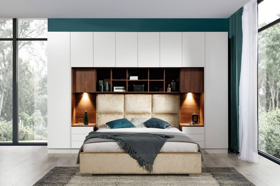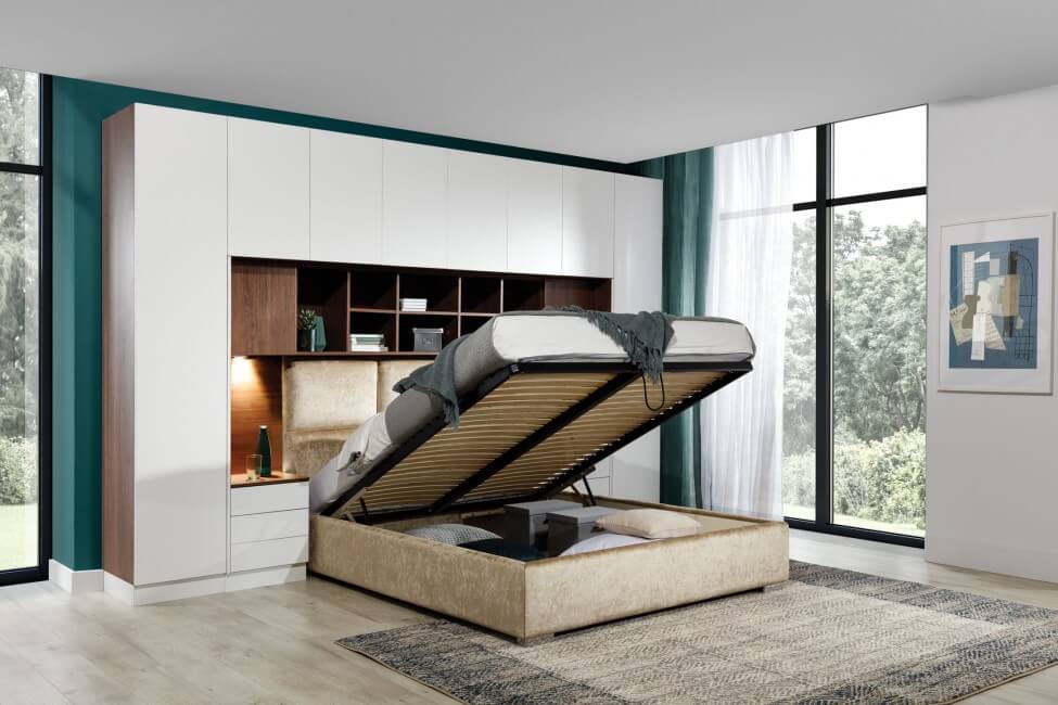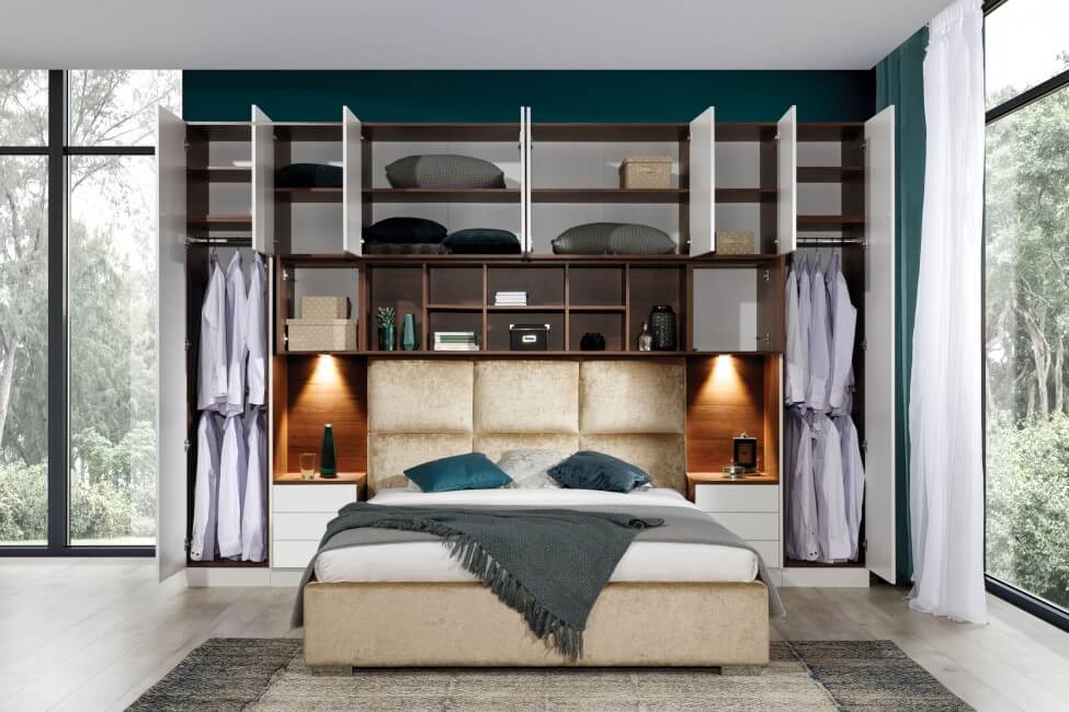 Kolekcja Sleep Varia jest idealnym rozwiązaniem do długich i wąskich sypialni, jakie często spotykamy w mieszkaniach. Dzięki integracji łóżka z ciągiem szaf, regałów i nadstawek, można optymalnie wykorzystać przestrzeń nawet w trudnych pomieszczeniach. System może być zabudowany do ścian i sufitu dzięki specjalnym blendom lub pozostawiony otwarty.