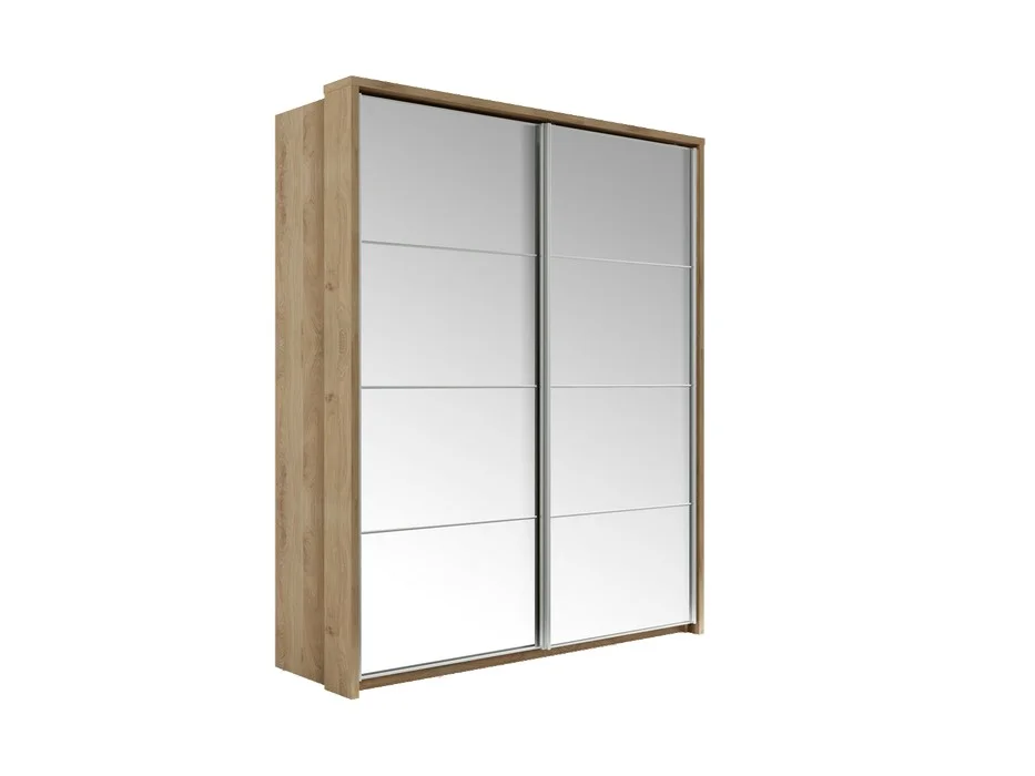 Mebel wykonano z solidnej płyty laminowanej, której krawędzie zostały zabezpieczone trwałym obrzeżem ABS. Szafa dostępna jest w eleganckim odcieniu dąb shetland, który podkreśla jej nowoczesny charakter.
