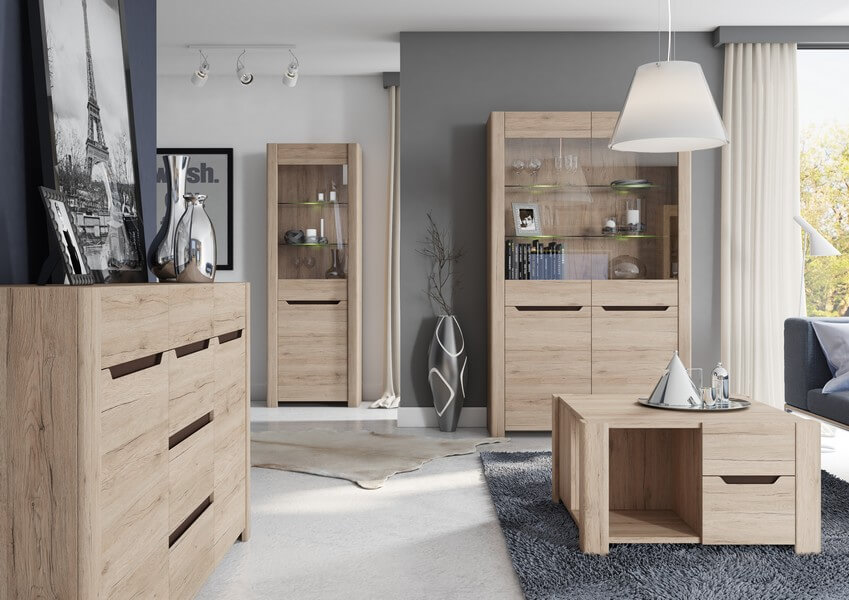2-drzwiowa szafa ubraniowa z praktycznym drążkiem na ubrania, wykonana w dekorze dąb san remo z akcentami brązu uni. Pasuje do salonu, sypialni i przedpokoju w zależności od aranżacji na jaką postawisz.