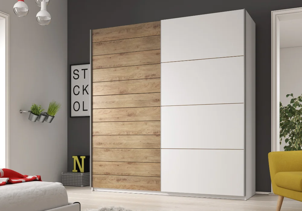Szafa Galaxy marki Helvetia doskonale łączy funkcjonalność z elegancją. Jest to idealne rozwiązanie dla wnętrz, gdzie liczy się każdy centymetr przestrzeni, dzięki zastosowaniu drzwi przesuwnych.