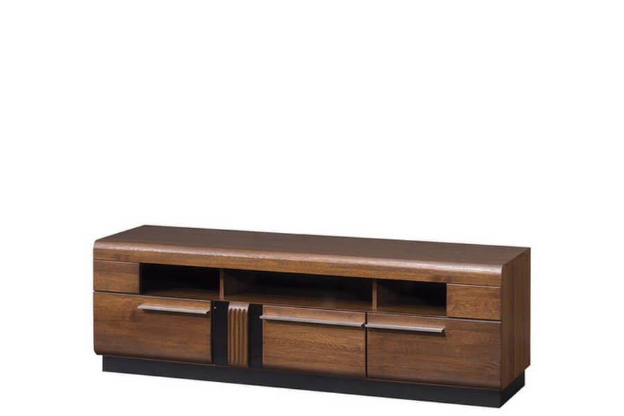 Wnęka na sprzęt multimedialny posiada otwory na kable. Front został wykonany z litego drewna, dzięki czemu całość prezentuje się elegancko i nowocześnie. Klasyczne połączenie głębokiej czerni z kolorem „dębu czekoladowego” świetnie sprawdzi się w każdej aranżacji.