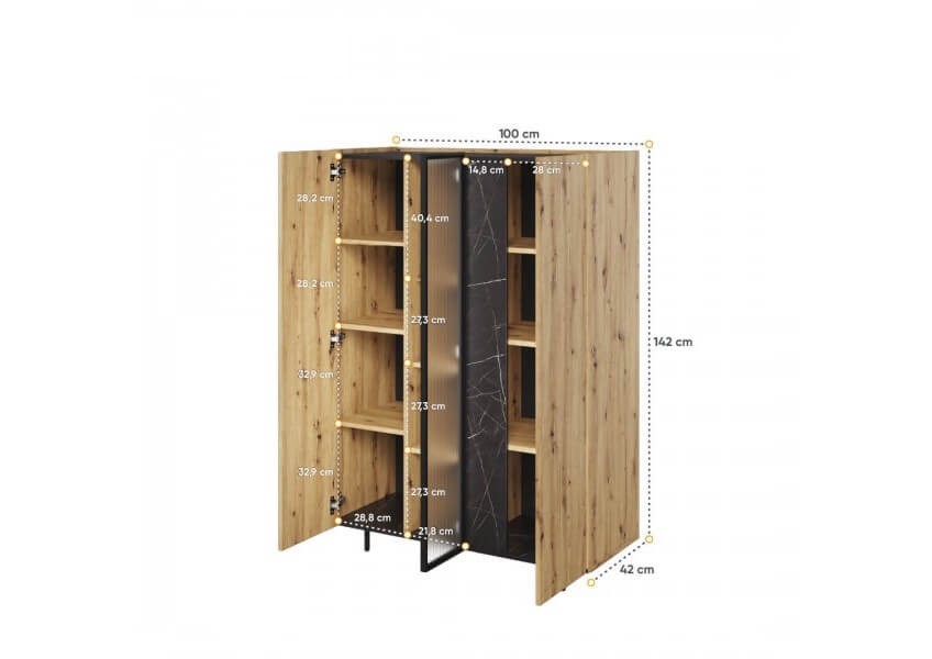 Wymiary: szer. 100 cm, wys. 142 cm, gł. 42 cm