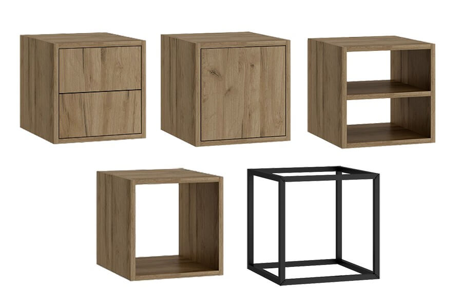 Właściwa konfiguracja pozwoli wspaniale odseparować zabudowę kuchenną od części jadalnej albo pokoju dziennego. Duży wybór wypełnień ułatwi aranżację przedpokoju, a także dzięki indrustrialnym sześcianom uporządkujemy akcesoria w nowoczesnej łazience. Ty decydujesz jak będzie wyglądał Twój mebel!