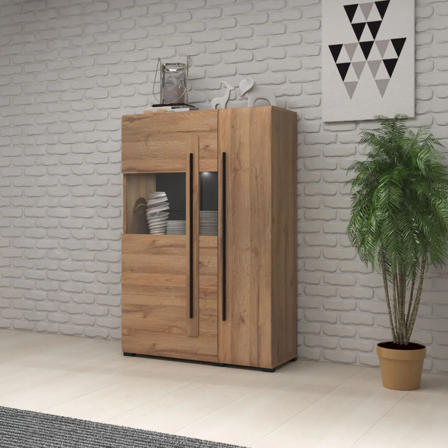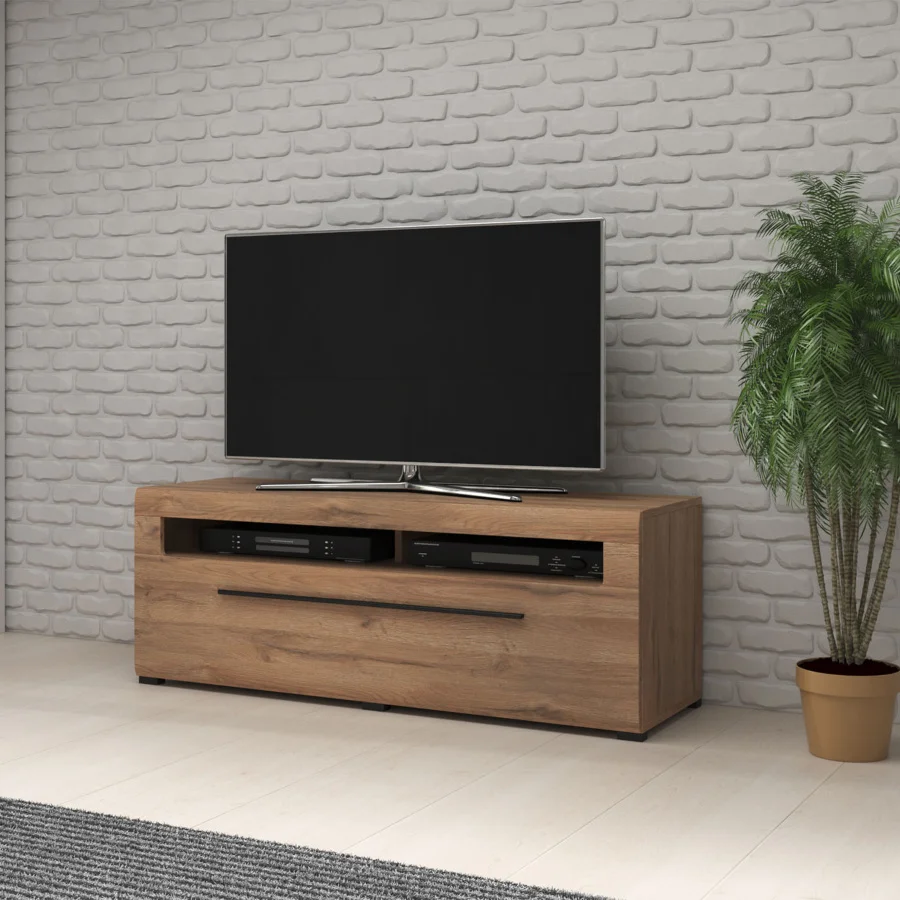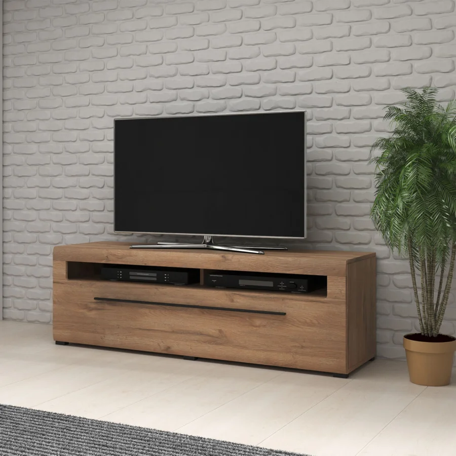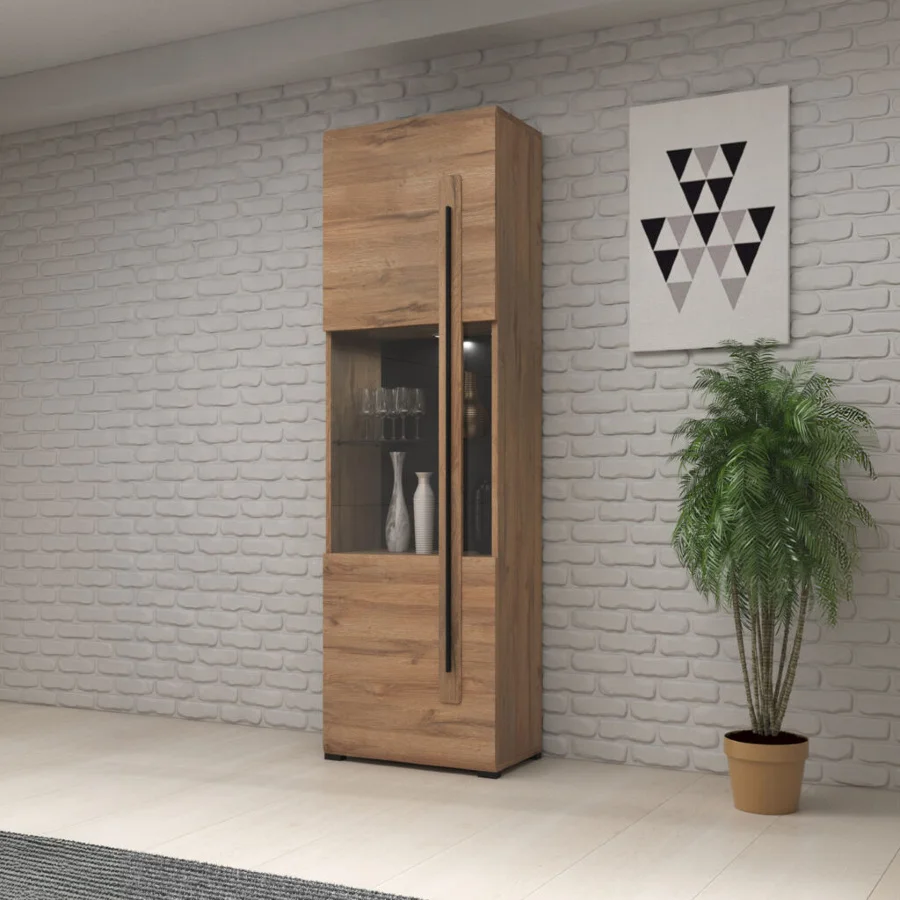 Wyróżnia się elegancką, geometryczną formą oraz dopracowanymi detalami. Zastosowane w komodach i szafkach – cichy domyk oraz szuflady z pełnym wysuwem – podnoszą komfort codziennego użytkowania i podkreślają dbałość o szczegóły.