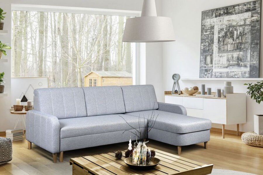 Narożnik można ustawić przy ścianie a komfort użytkowania zapewniają sprężyny faliste.