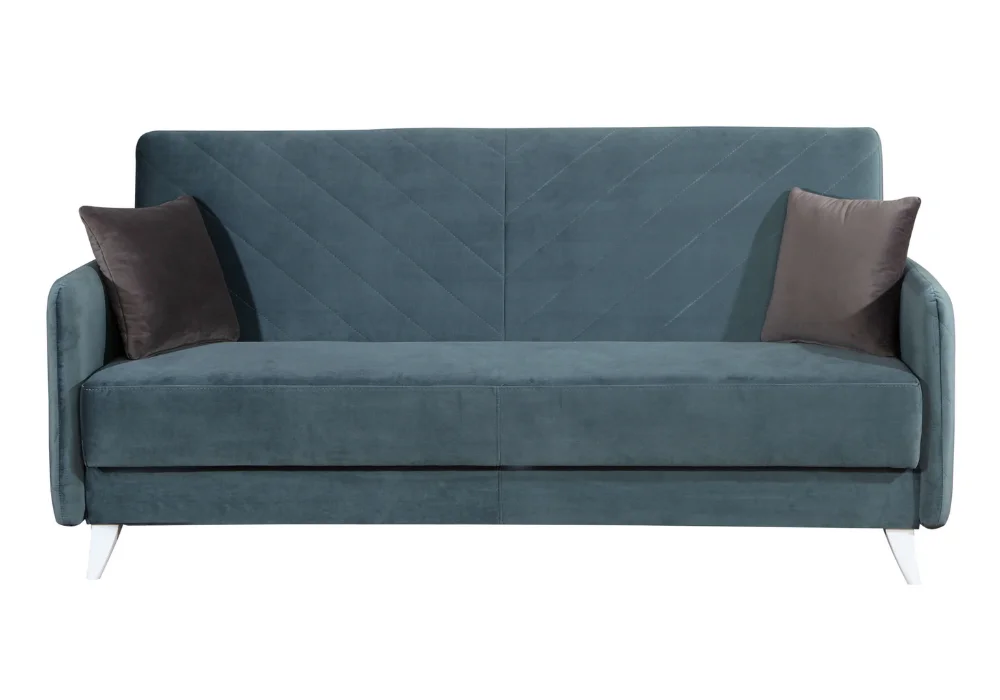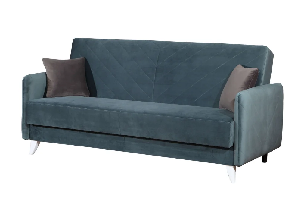 Wersalka Astoria łączy w sobie elementy nowoczesności i zachwyca prostą formą oraz efektownymi przeszyciami na oparciu. Uroku dodają stylizowane i smukłe drewniane nóżki, które nadają lekkości wersalce. Komfort użytkowania zapewnia zastosowanie sprężyn falistych.