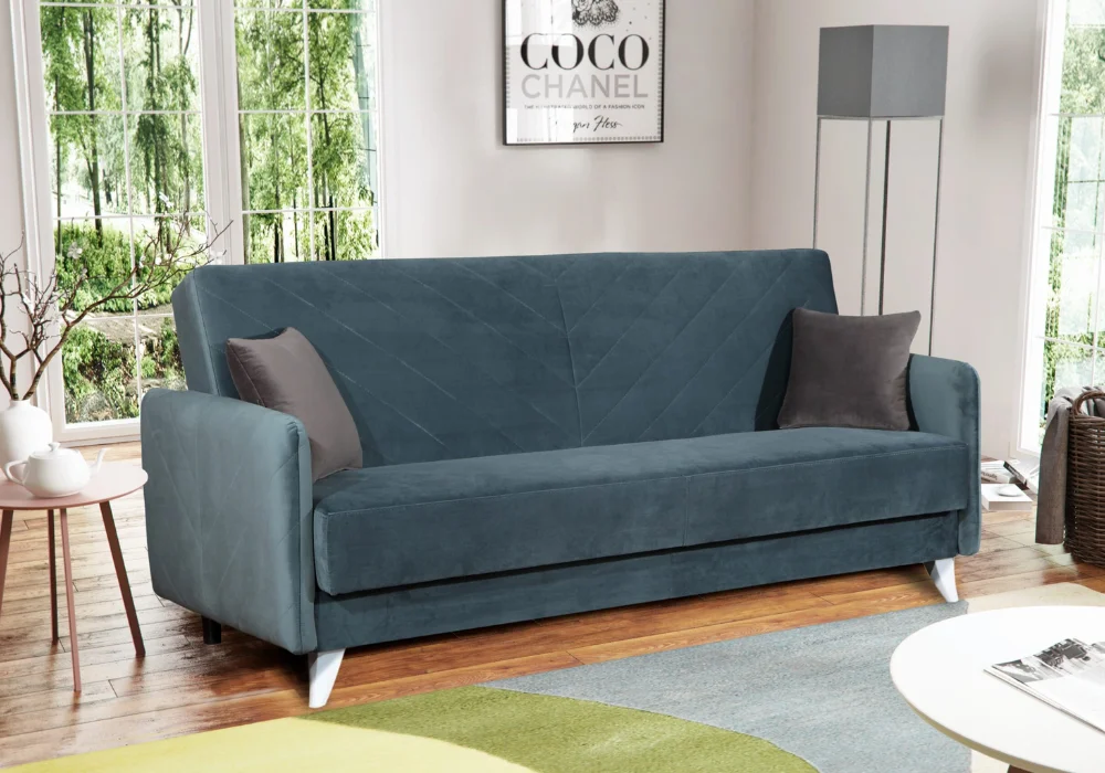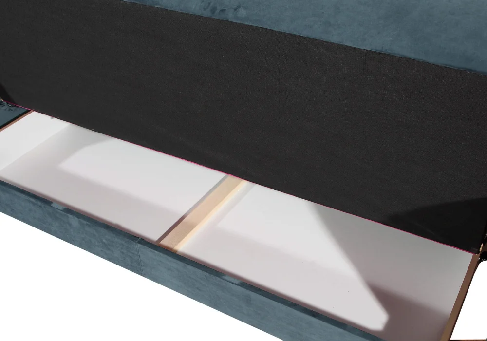 Zastosowany klasyczny wersalkowy system rozkładania daje szybki dostęp do pojemnika na pościel i pozwala na zorganizowanie wygodnego spania.