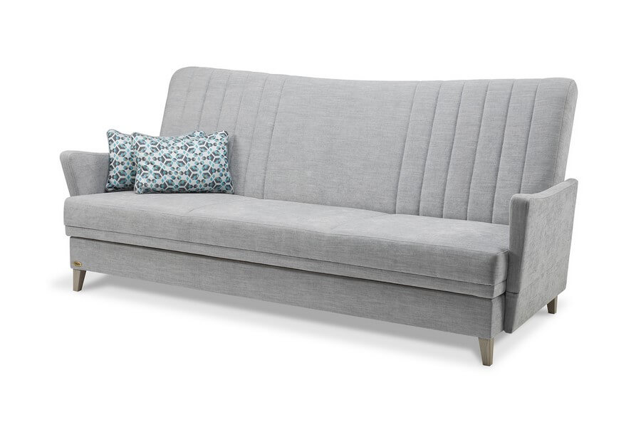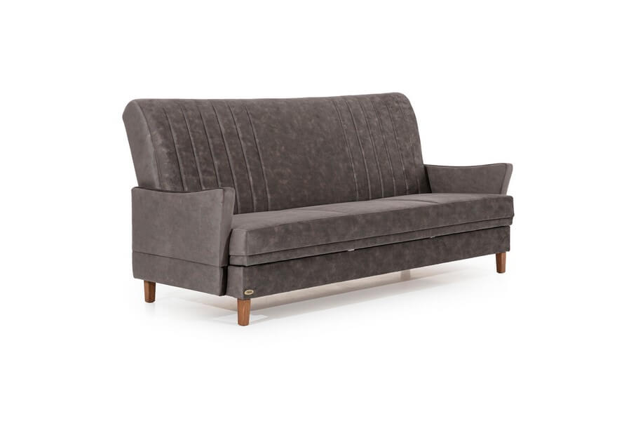 Wersalka TORINO [3W] ma kształt podobny do sofy, ale dodatkowo posiada funkcję spania i pojemnik na pościel. Doskonale zastępuje sofę tam, gdzie czasami potrzebna jest jej funkcjonalność. Meble te zapewniają komfortowe siedzenie dzięki sprężynom falistym i piance HR.