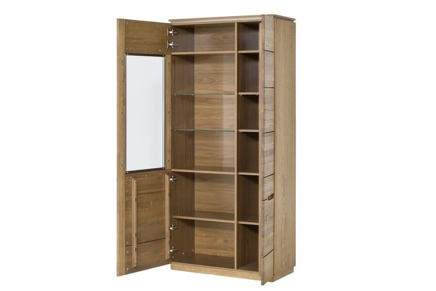 Naturalne piękno drewna połączone z precyzyjnym wykonaniem sprawiają, że witryna z kolekcji Montenegro będzie nie tylko funkcjonalnym elementem wyposażenia wnętrza, ale zarazem jego niebanalną ozdobą.