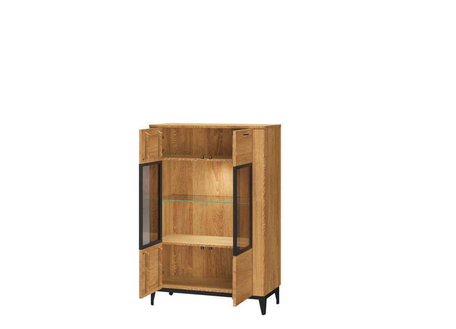 Wnętrze witryny skrywa cztery solidne półki, idealne do przechowywania książek, dekoracji, szkła czy innych ozdób. Precyzyjne wykończenie i solidna konstrukcja sprawiają, że witryna Porto 15 wzbogaci każdą przestrzeń o nutę elegancji i wyrafinowania.