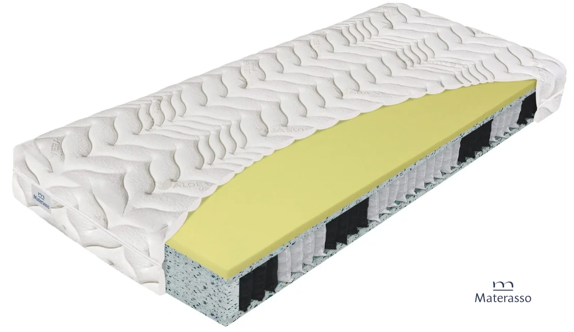 Materac wyposażony jest w pokrowiec z tkaniny Aloe Vera, która nie tylko zapewnia miękkość w dotyku, ale również wspiera regenerację skóry podczas snu. Zawarte w niej enzymy, aminokwasy i minerały przyspieszają gojenie drobnych podrażnień oraz poprawiają kondycję naskórka. Pokrowiec można łatwo zdjąć i prać w temperaturze do 60°C, a jego konstrukcja z zamkiem błyskawicznym umożliwia podział na dwie części – co ułatwia pielęgnację i utrzymanie higieny.